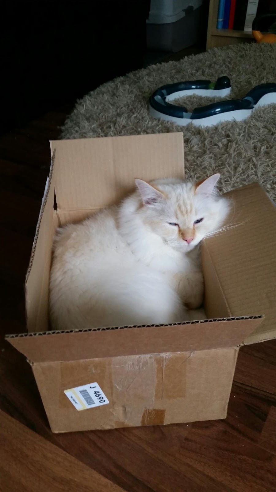 Näyttelyssä kissan viilentäminen on siitä haasteellista, että turkkia ei voi kastella ollenkaan. Rocky kyllä nukkui rauhallisesti suurimman osan ajasta eikä läähättänyt kuin ihan aluksi ennen kuin laitoin kallet häkkiin viilentämään.